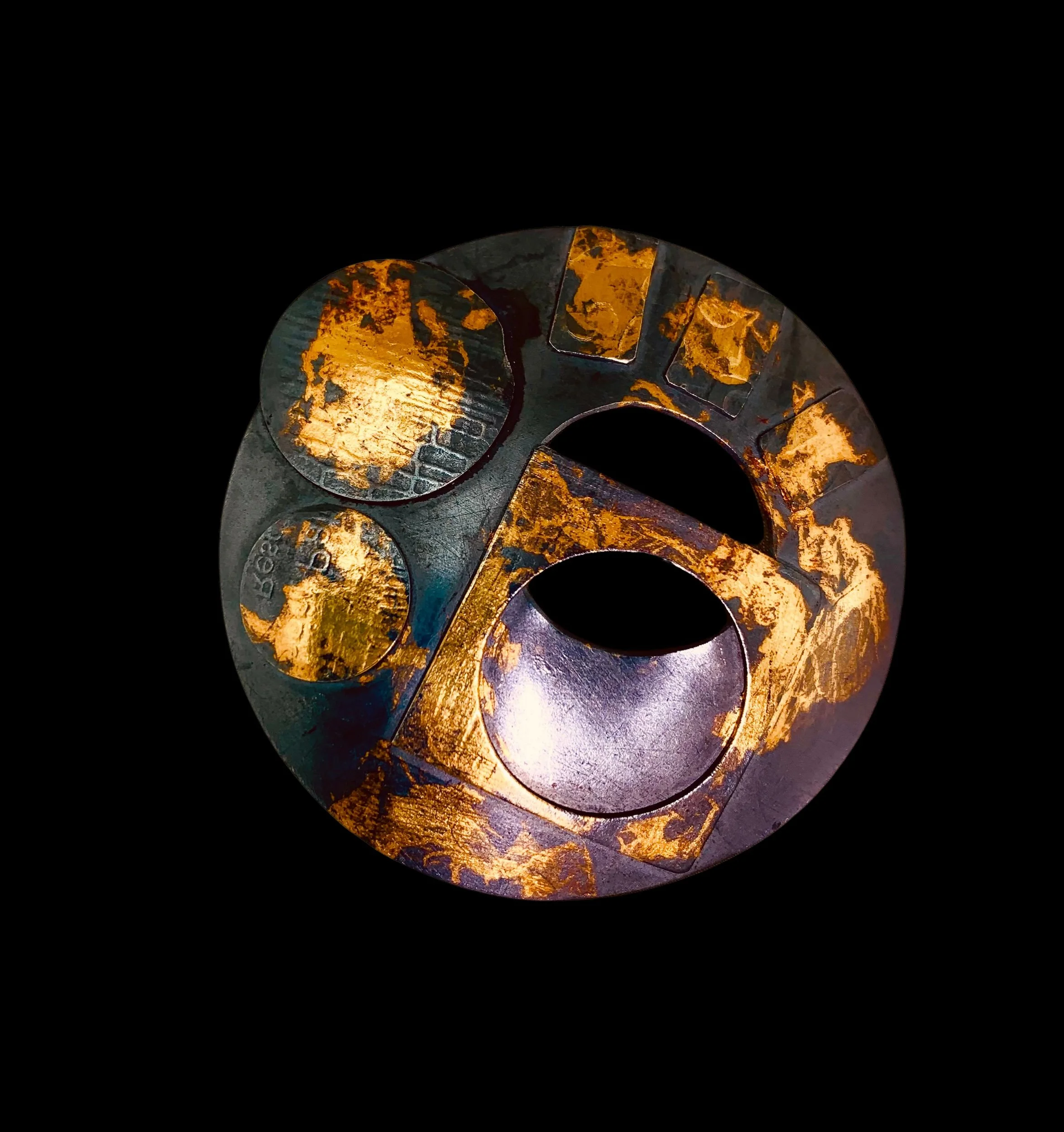 Argentium Silver pendant with 24K gold Keum Boo darkened with Liver of Sulphur